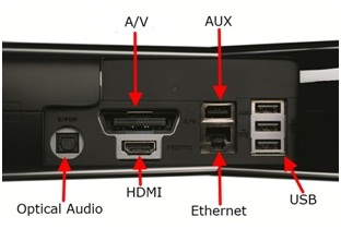 2 -> Sobre o Xbox 360 Slim, a porta de Ethernet está abaixo da porta de entrada Aux.