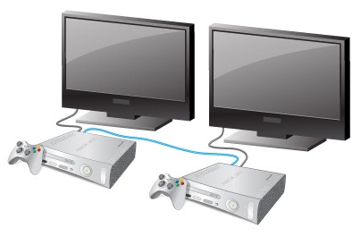 A reprodução de link do sistema é uma forma de jogos com vários participantes que permite a conexão 2 consoles do Xbox 360 com um cabo ou até 16 consoles através de uma rede. Com os consoles vinculados, vários jogadores podem jogar mesmo. Esse tipo de jogos com vários participantes é diferente de jogos com vários participantes de tela dividida, em que todos os jogadores estão conectados ao mesmo console.